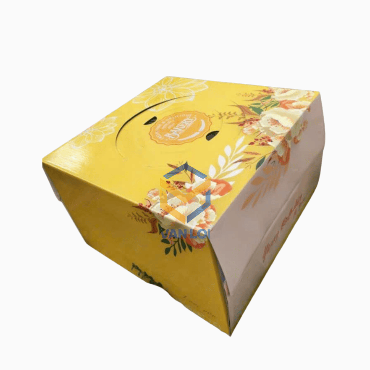 Yellow Cake Box with Floral and Leaf Pattern